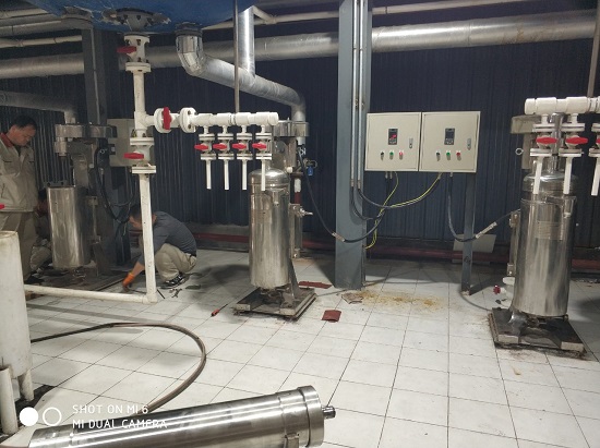 液體物料通過完全徹底預(yù)處理后進入管式離心機,清洗后大多數(shù)沉淀物能夠去除,以下降固體含量,攪拌物料以增加流動性。能夠有效地提升離心機的分離作用,消減分離時間。